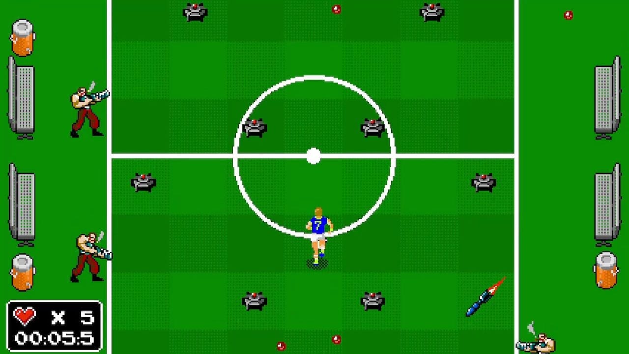 SoccerDie (Nintendo Switch), is a love letter to arcade titles of the past, featuring the most accurate soccer simulation to support landmines, giant brains, dinosaurs, ghosts, tanks, and at least one vampire.
